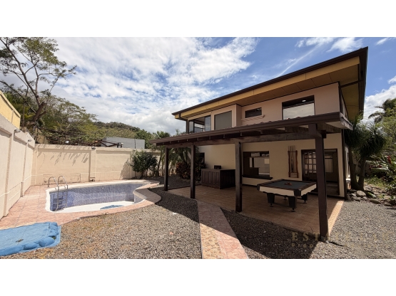 Ubicada en Pozos de Santa Ana, esta casa ofrece amplio patio trasero con hermosa terraza y piscina privada. La propiedad cuenta con tapia perimetral y zonas verdes alrededor de la casa.